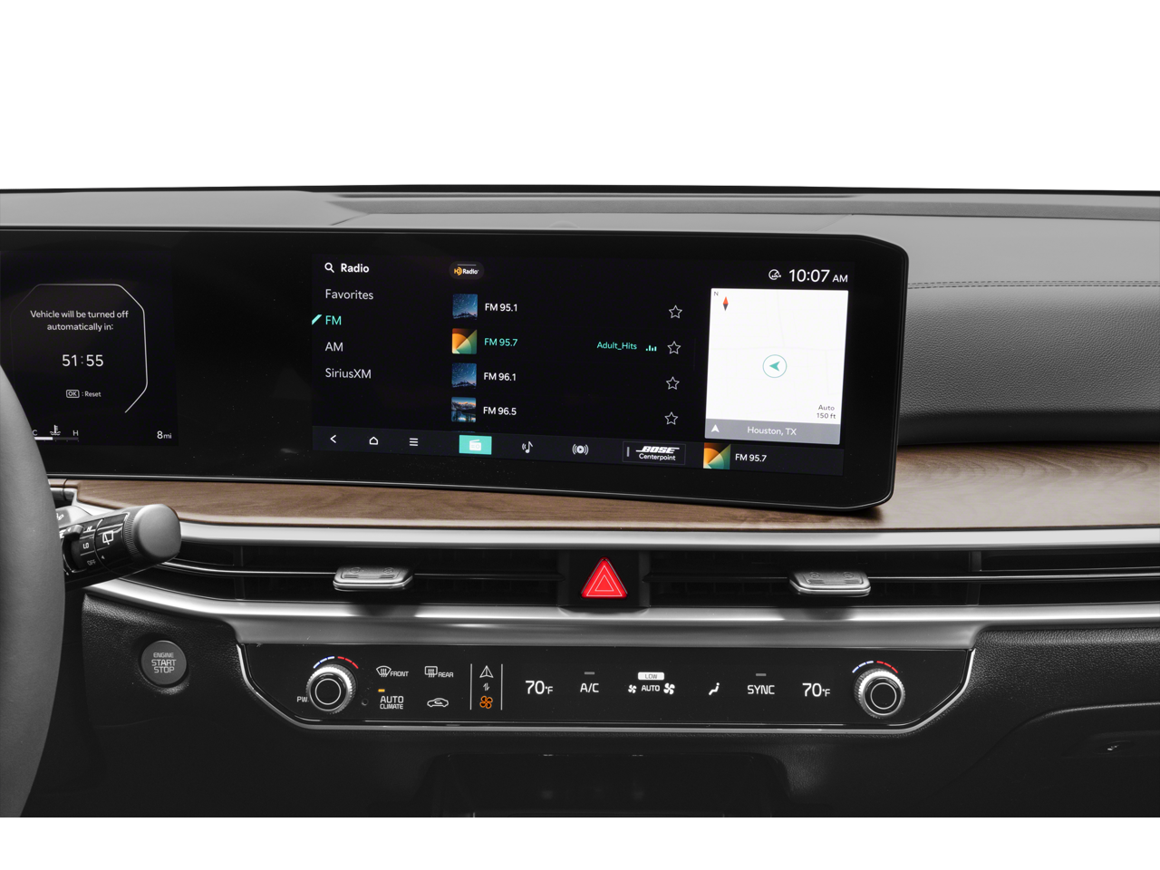 - Radio: AM/FM Bose Premium Audio System -inc: 12.3" ccNC touchscreen, navigation, HD Radio, Bluetooth® w/audio remote control, wireless Android Auto and wireless Apple CarPlay, voice recognition, Sirius XM, modem, Kia Connect, Wi-Fi hot spot, Over-The-Air Updates (OTA), 12 speakers including subwoofer, center channel, external amp and USB