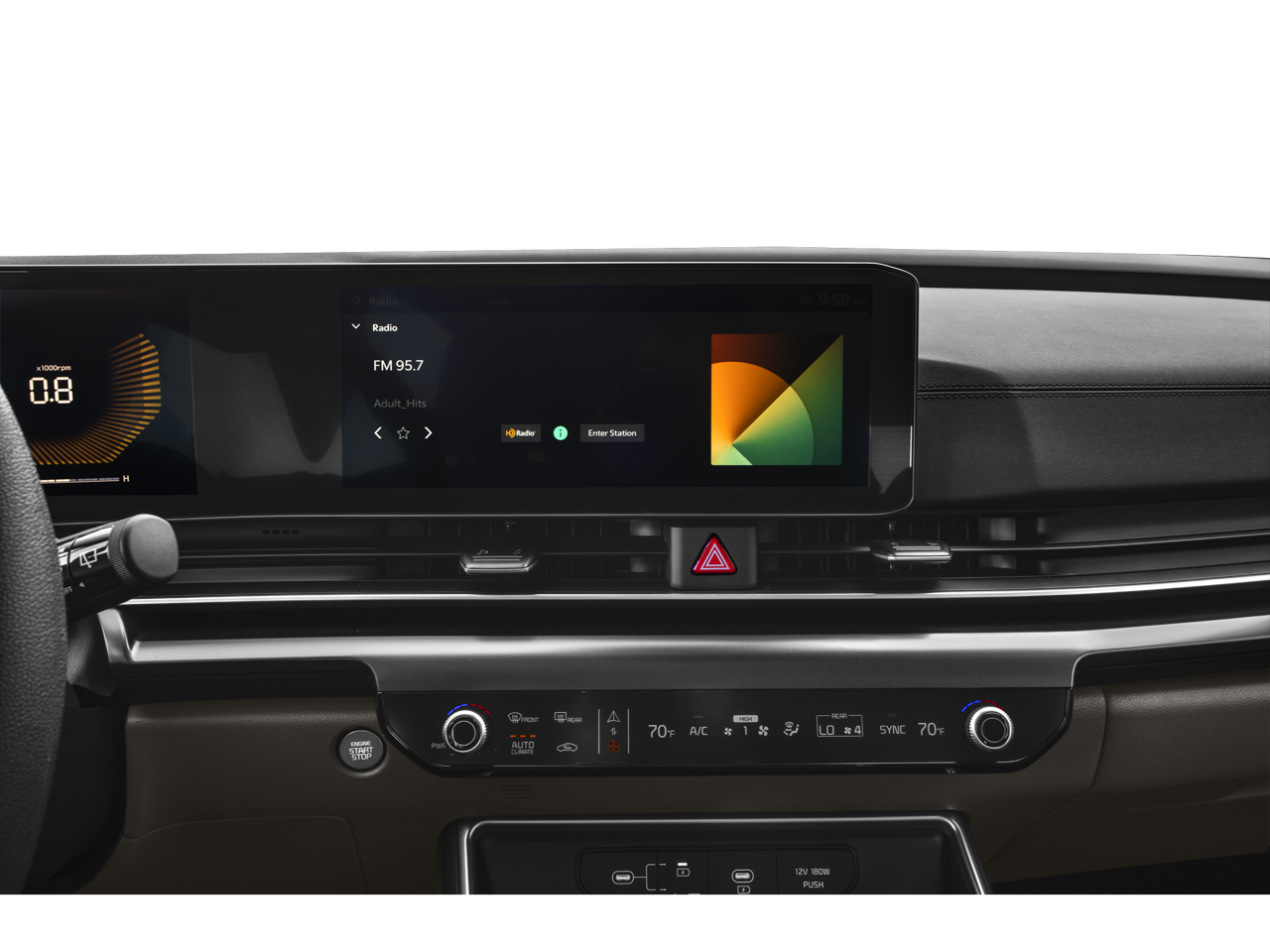 - Radio: AM/FM/HD Audio System -inc: 6 speakers, 12.3" audio display, navigation system, Android Auto, Apple CarPlay, SiriusXM, Bluetooth® w/voice recognition, modem, 1 media port, USB connectivity and Wi-Fi hotspot