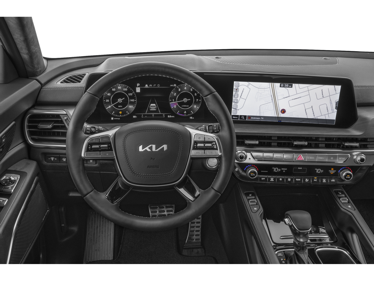 Never get into a cold vehicle again with the remote start feature on this unit. The vehicle features a hands-free Bluetooth® phone system. Keep your hands warm all winter with a heated steering wheel in this 1/2 ton suv . The vehicle offers Apple CarPlay for seamless connectivity. The installed navigation system will keep you on the right path. This vehicle offers Android Auto for seamless smartphone integration. This 1/2 ton suv has a clean CARFAX vehicle history report. The leather seats in this 2024 Kia Telluride are a must for buyers looking for comfort, durability, and style. This Kia Telluride employs advanced tech for collision avoidance, enhancing safety on the road. It's Lane Departure Warning keeps you safe by alerting you when you drift from your lane. Protect this vehicle from unwanted accidents with a cutting edge backup camera system. This unit has a V6, 3.8L high output engine.